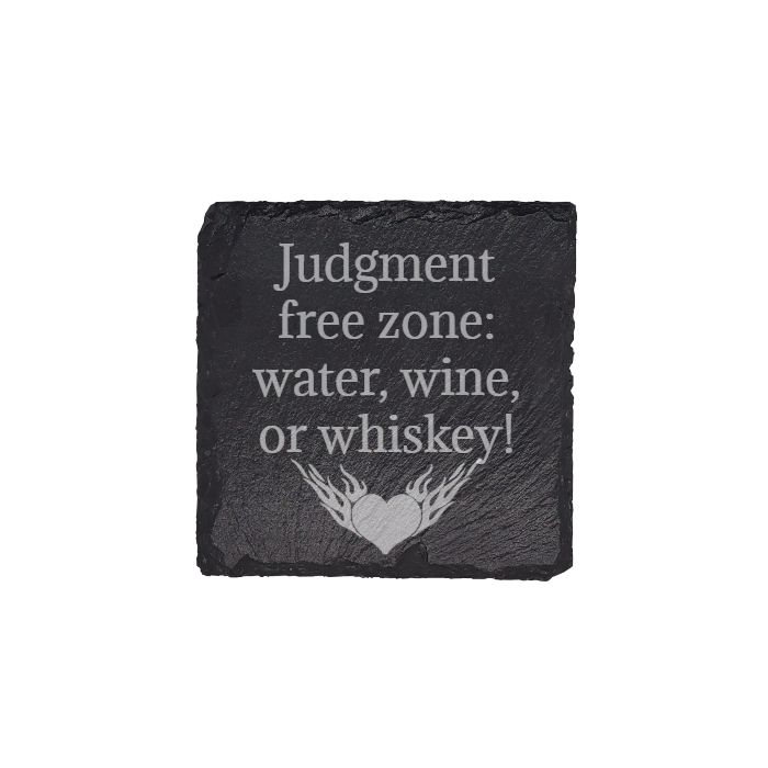 "Judgment Free Zone" Slate Coasters: Relax and Sip in Style!